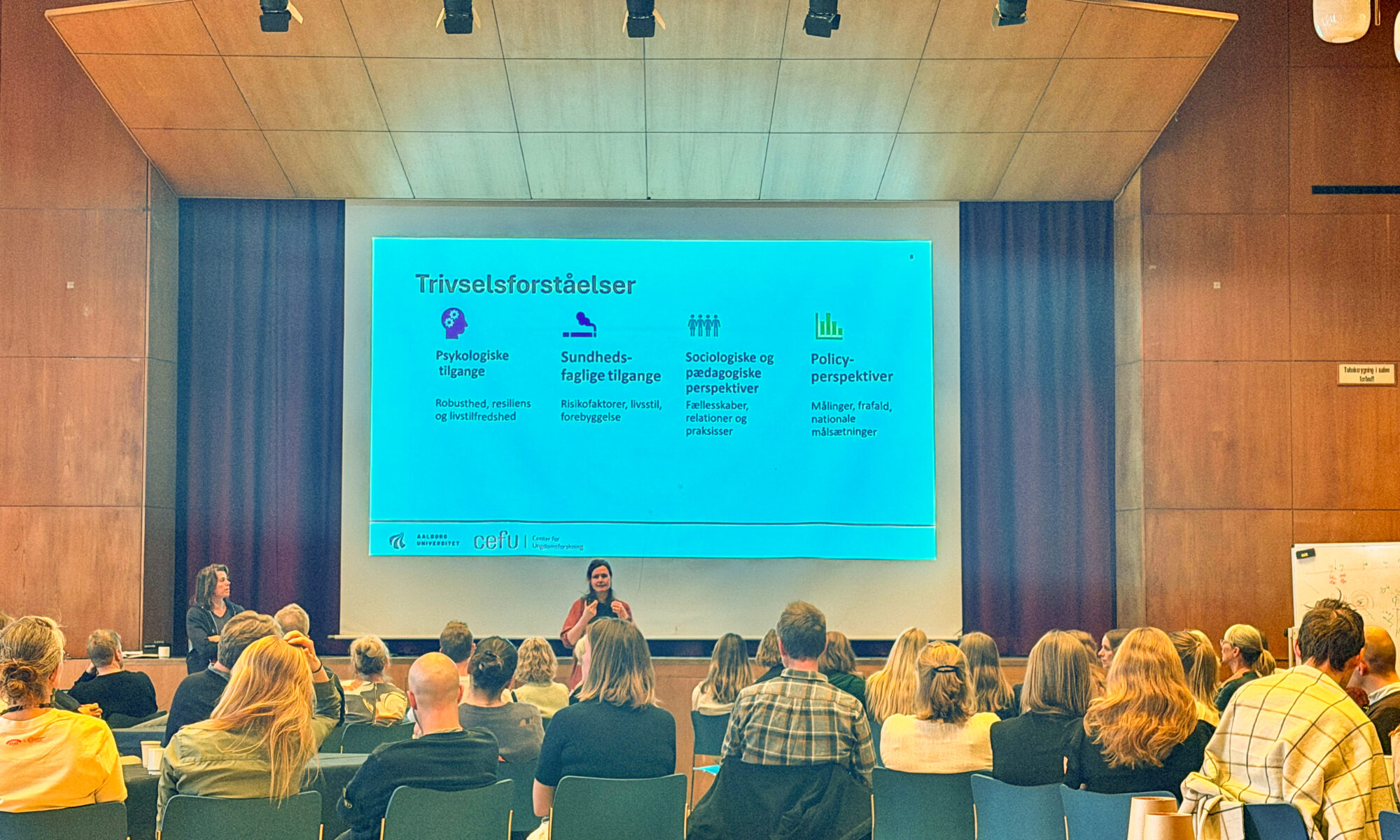 Programmet bød på oplæg fra forskere ved Center for Ungdomsforskning, Maria Bruselius-Jensen og Ida Andrea Nilsson, der har været med til at skrive bogen ’Trivselsarbejde mellem skole og ungdomsliv’ fra 2025.